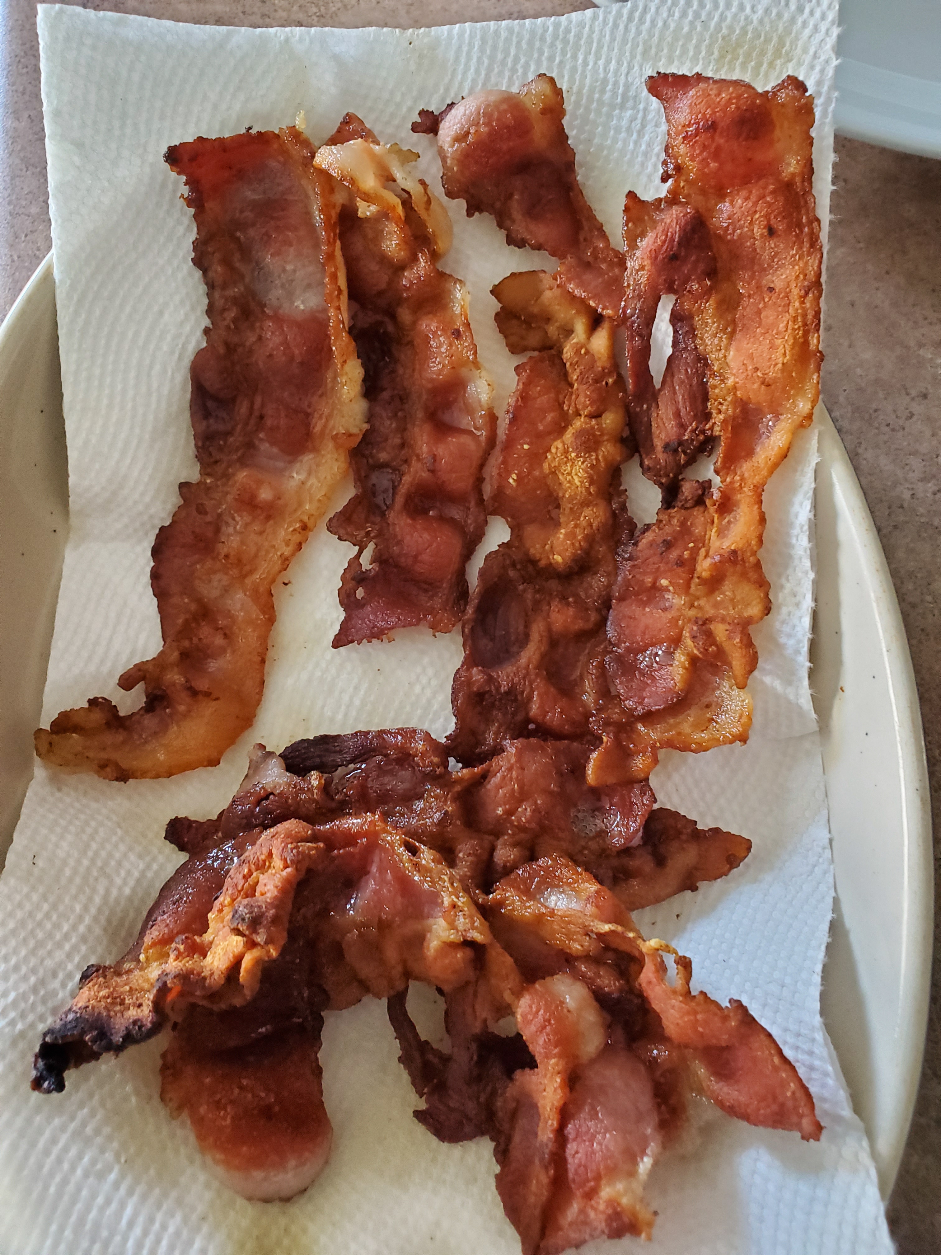 We now use a Blackstone propane griddle and really enjoy cooking everything on it at the same time. When you have a hungry 17 and 20 year old to feed, you want things done quickly and efficiently so that you can keep the hunger beasts that live within them at bay. The griddle is one stop tasty cooking because it allows us to adjust the heat on parts of the grill to accommodate what we are cooking. If you want to try this and you don’t have a griddle (or crazy husband who will wear a coat and set this thing up in the garage because smash burgers can’t wait until spring) you can certainly use a frying pan on a stove top and toast your buns in the oven or a toaster. You can also cook your bacon in the microwave to utilize your time well.