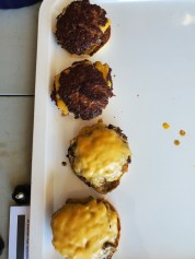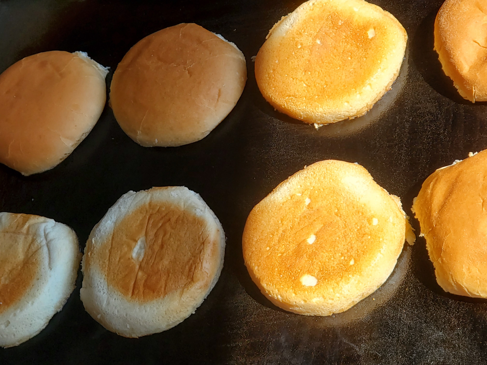 When the kids were little, Tom made eating fun for them. Not wanting them to be picky like him, he not only made tasty and nutritious food, he made food fun and bestowed zany names upon everything he made for them. I remember picking up Logan from Kung Fu and Adam from somewhere else and asking them what Daddy made them for dinner. I was also giving a co-worker a ride home and she was appreciating their answer as much as I was when they both said, “Crabby Patty Explosions” with salad. They were big Sponge Bob fans at the time and Tom stole the name of the burger on the show, made their burgers with thick patties, melted cheese and a slosh of ketchup that went not only on the burger but smeared onto the plate much like if the burger exploded. He kept the top bun off and made putting the lid on the burger the boys’ job. That was just one of the many kookie meals he made for them when I was not home to cook. Adam ( albeit autistic ) and Logan ate pretty much everything we made for them and still do. Now young men, the Crabby Patty Explosion no longer exists but in honour of the important role this Daddy made burger had in their mealtimes, I give you my husband’s delicious-as-all-get-out, Smash Burgers.
