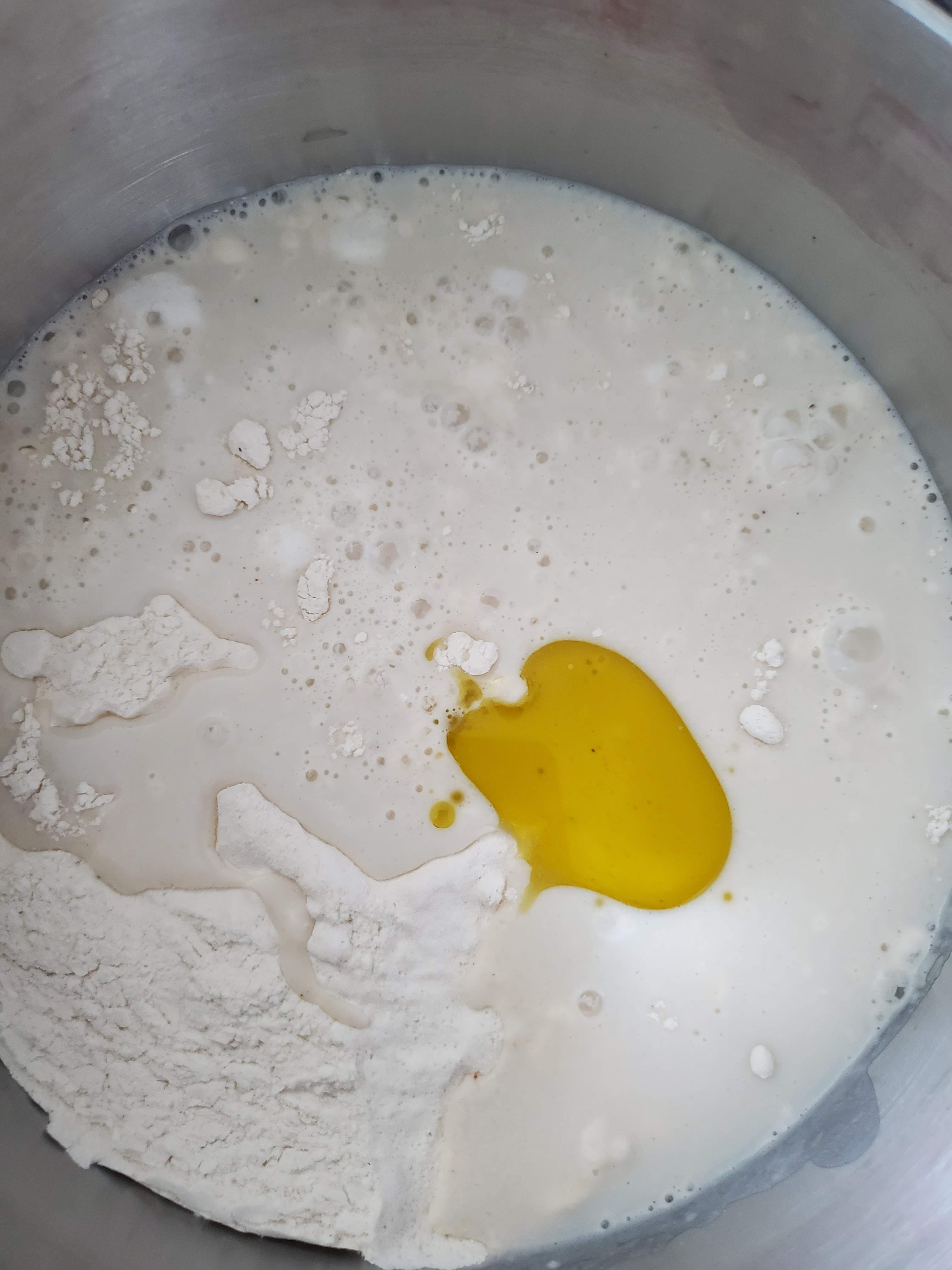 He added the pasta to the pot and folded in the Alfredo sauce and some freshly grated Parmesan and left on low heat.